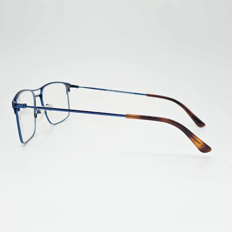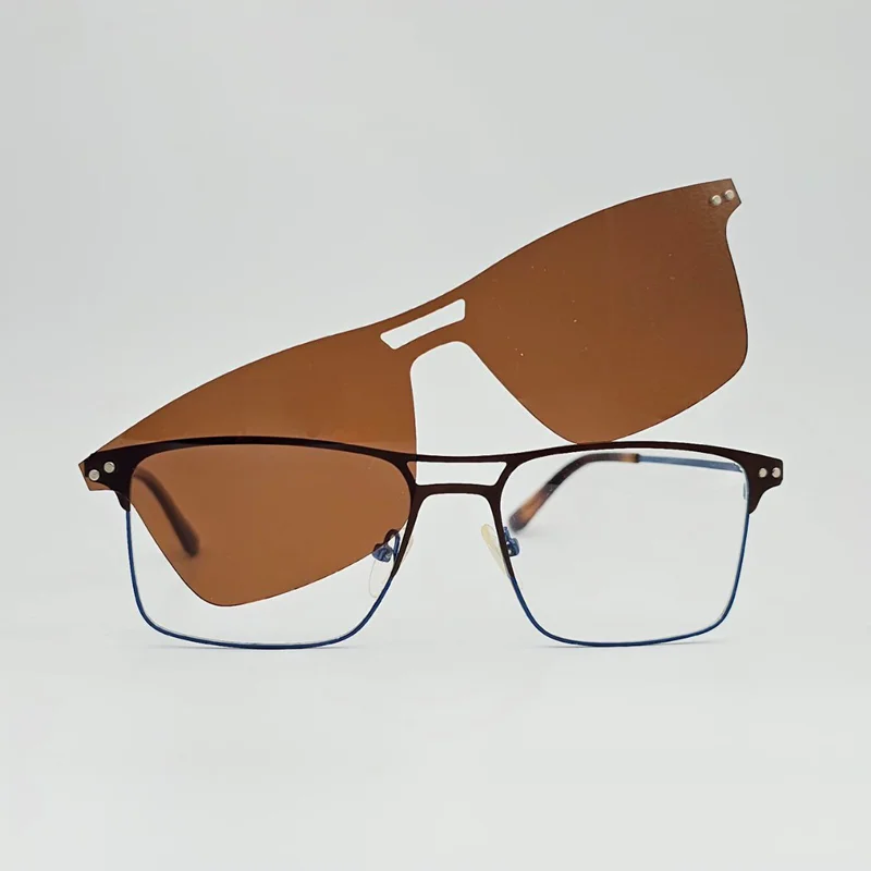 عینک طبی مردانه فریم مستطیلی فلزی آبی با کاور آفتابی مگنتی