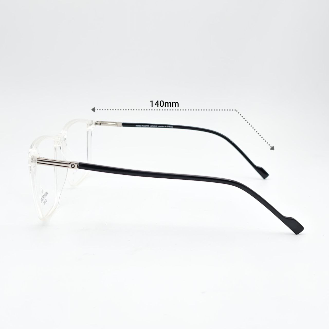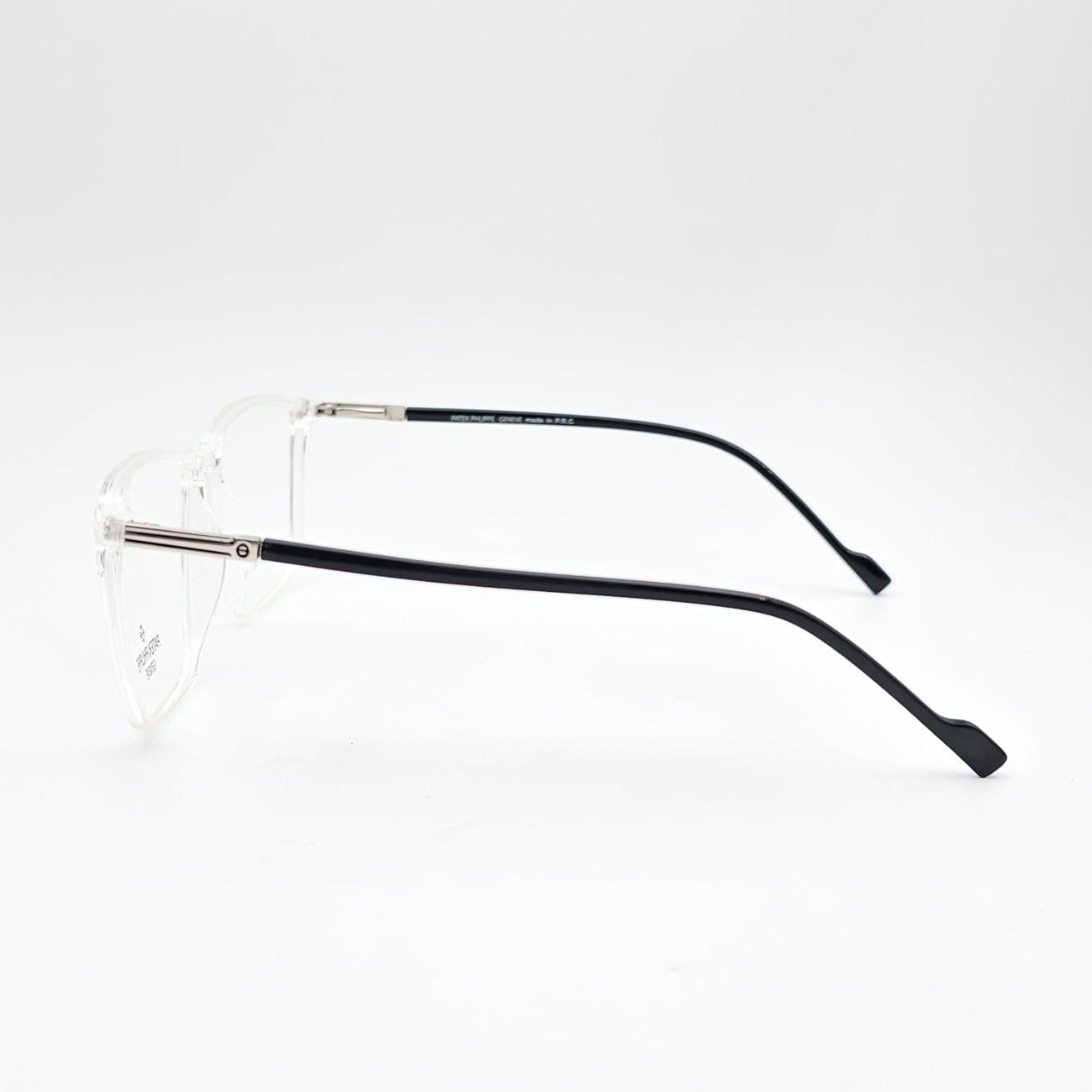 این مدل از برند PATEK PHILIPPE یک فریم کریستالی شفاف و فوقسبک است که با طراحی مستطیلی و ظاهر مینیمال، استایلی بسیار تمیز، امروزی و جذاب ایجاد میکند. ترکیب فریم شفاف در قسمت جلو با دستههای مشکی مات، تضاد چشمنوازی میسازد که این مدل را مناسب استفاده روزمره، محیط کار و استایلهای رسمی میکند.فریم از جنس TR90 ساخته شده بشدت مقاوم و محکم و انعطاف پذیر تست و از طرفی نشکن هم هست و روی صورت احساس سنگینی ایجاد نمیکند. اتصال فلزی بین جلو و دستهها، استحکام بیشتری به مفصلها میدهد و باعث میشود عینک در استفاده طولانیمدت دوام بالایی داشته باشد. طراحی استاندارد و ارگونومیک دستهها نیز به فیکسشدن بهتر عینک کمک میکند.این مدل برای نصب انواع عدسیهای طبی—از جمله بلوکات، ضدخش، فتوکرومیک و...است