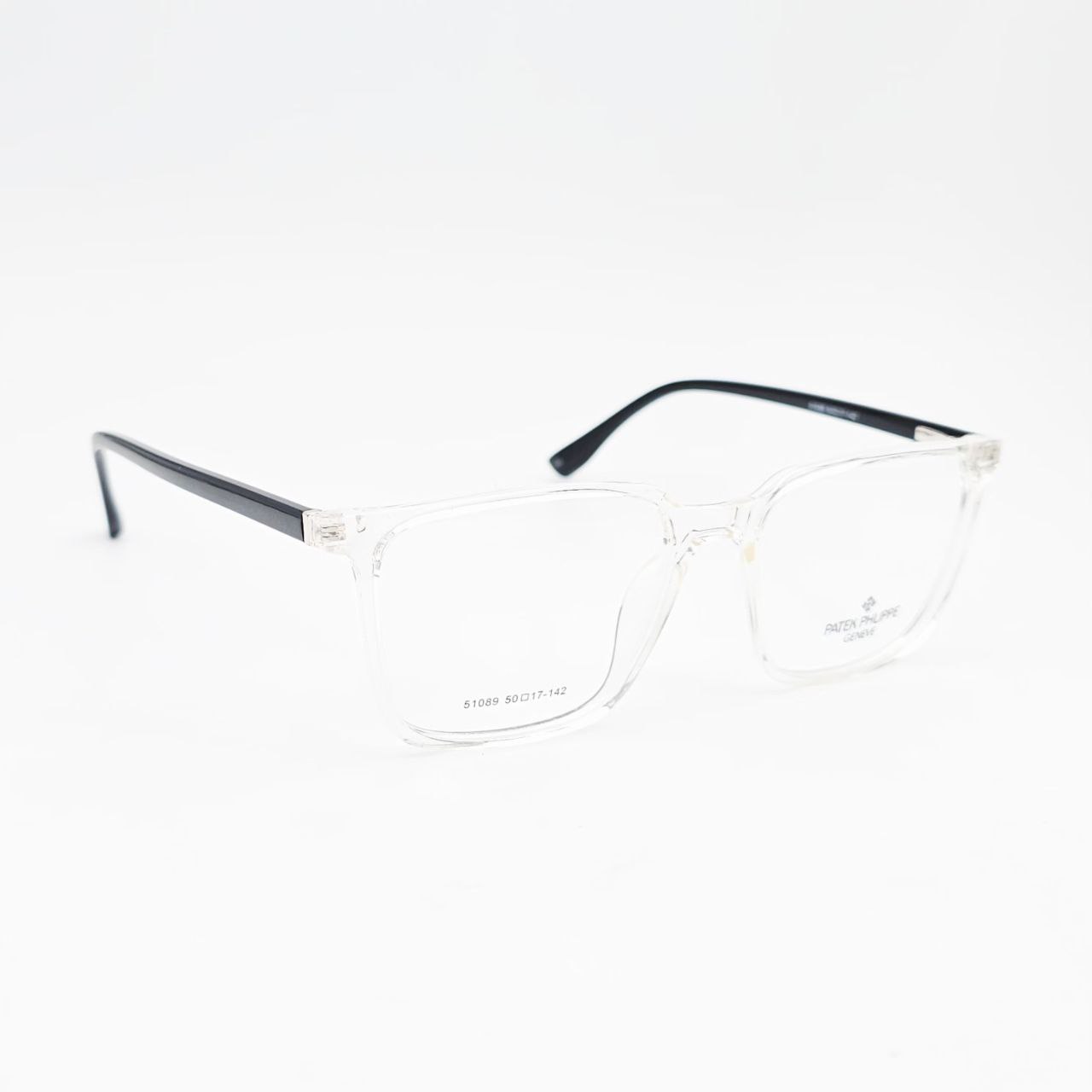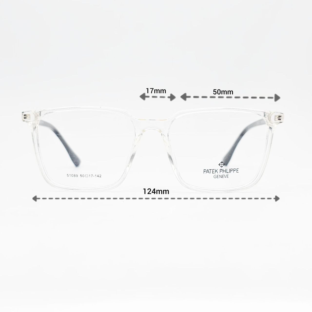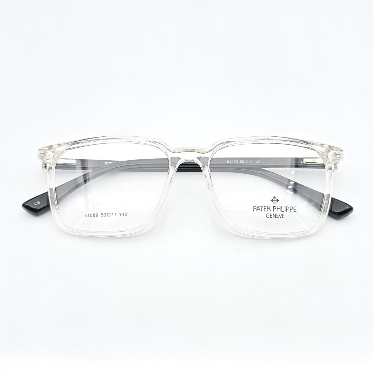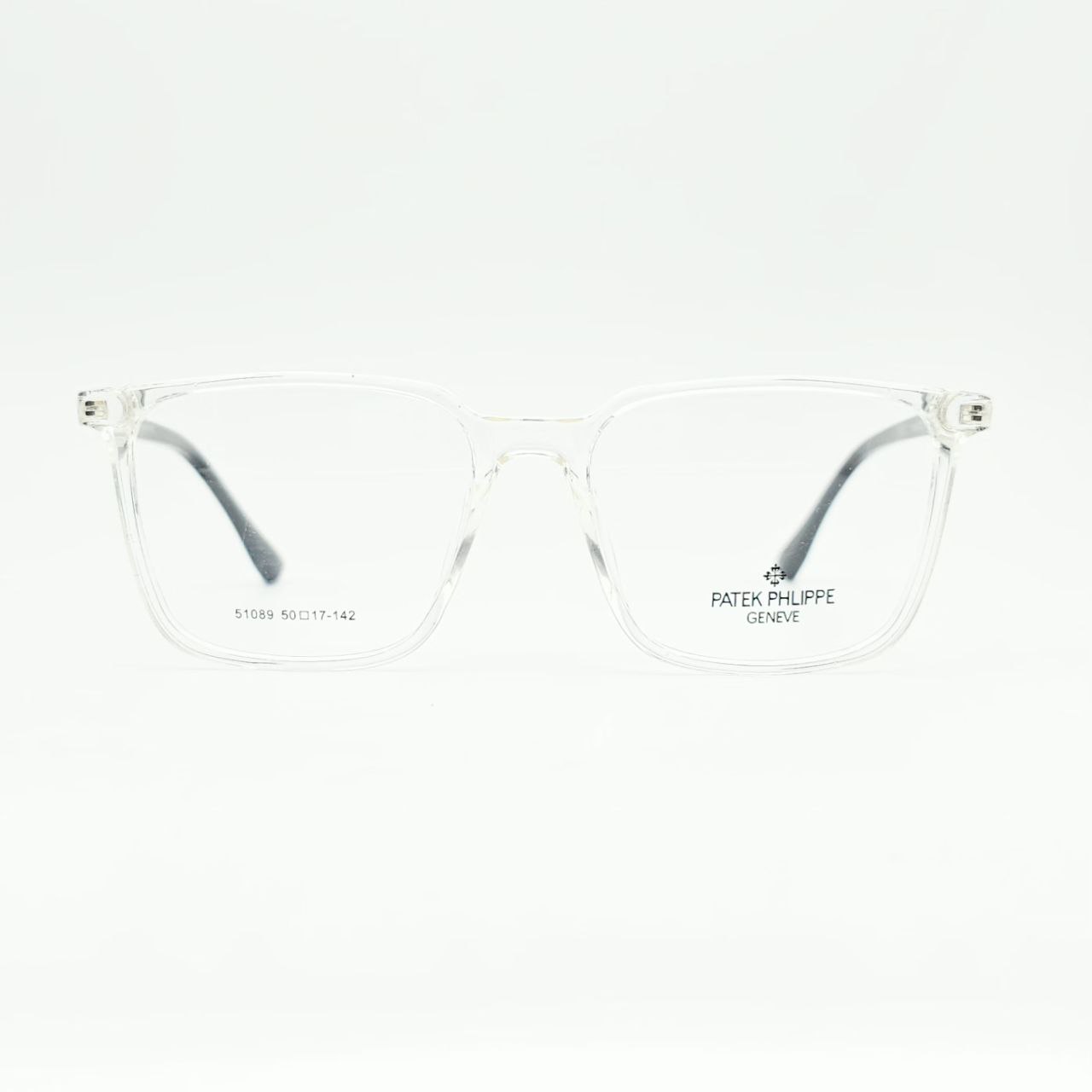 این مدل از برند PATEK PHILIPPE با جنس TR90 ساخته شده؛ متریالی فوقسبک، انعطافپذیر و بسیار مقاوم که برای استفاده روزمره عالی عمل میکند و روی صورت تقریباً بدون وزن حس میشود. طراحی مستطیلی شفاف در قسمت جلو، همراه با دستههای مشکی ساده و مینیمال، ظاهر حرفهای و کاملاً امروزی ایجاد میکند.