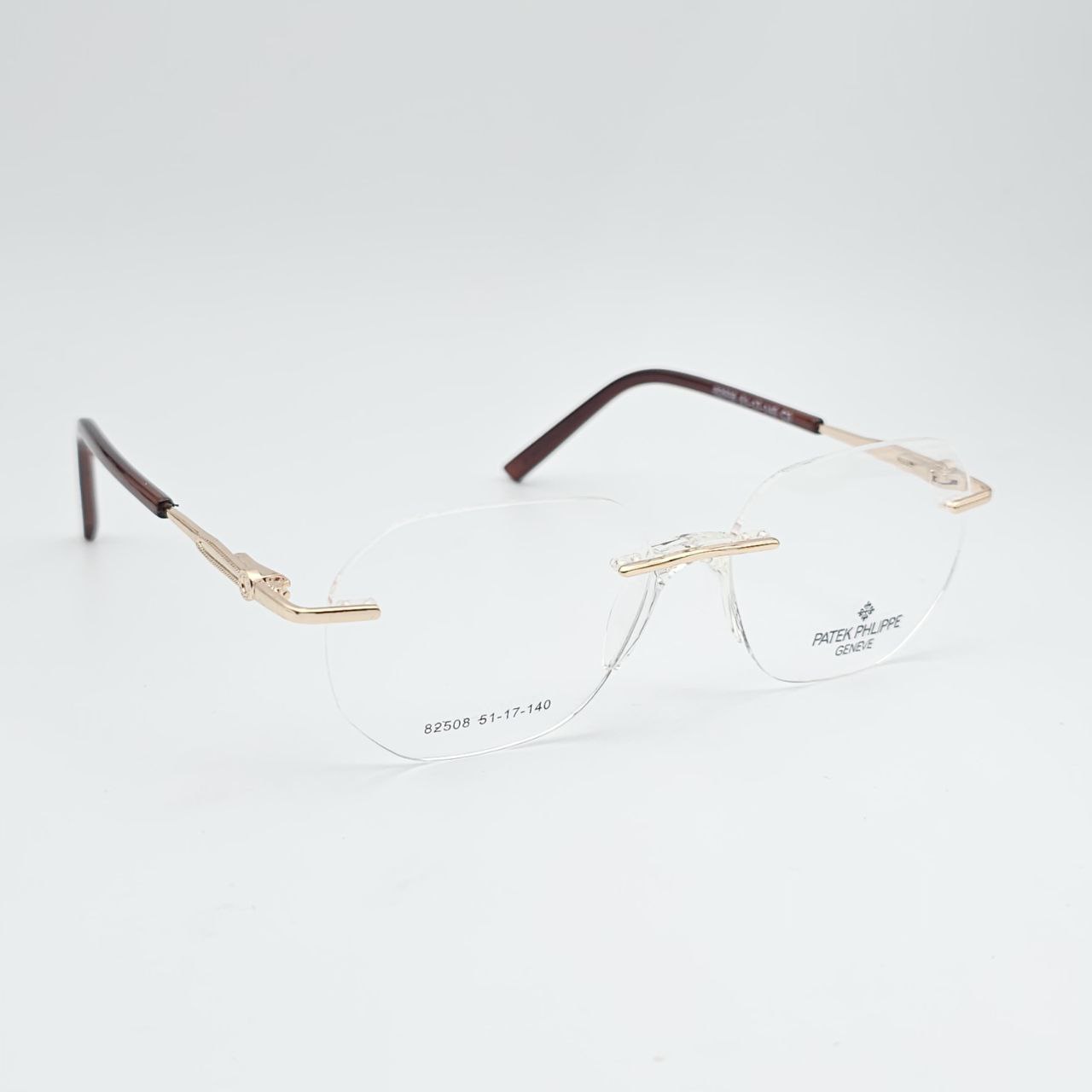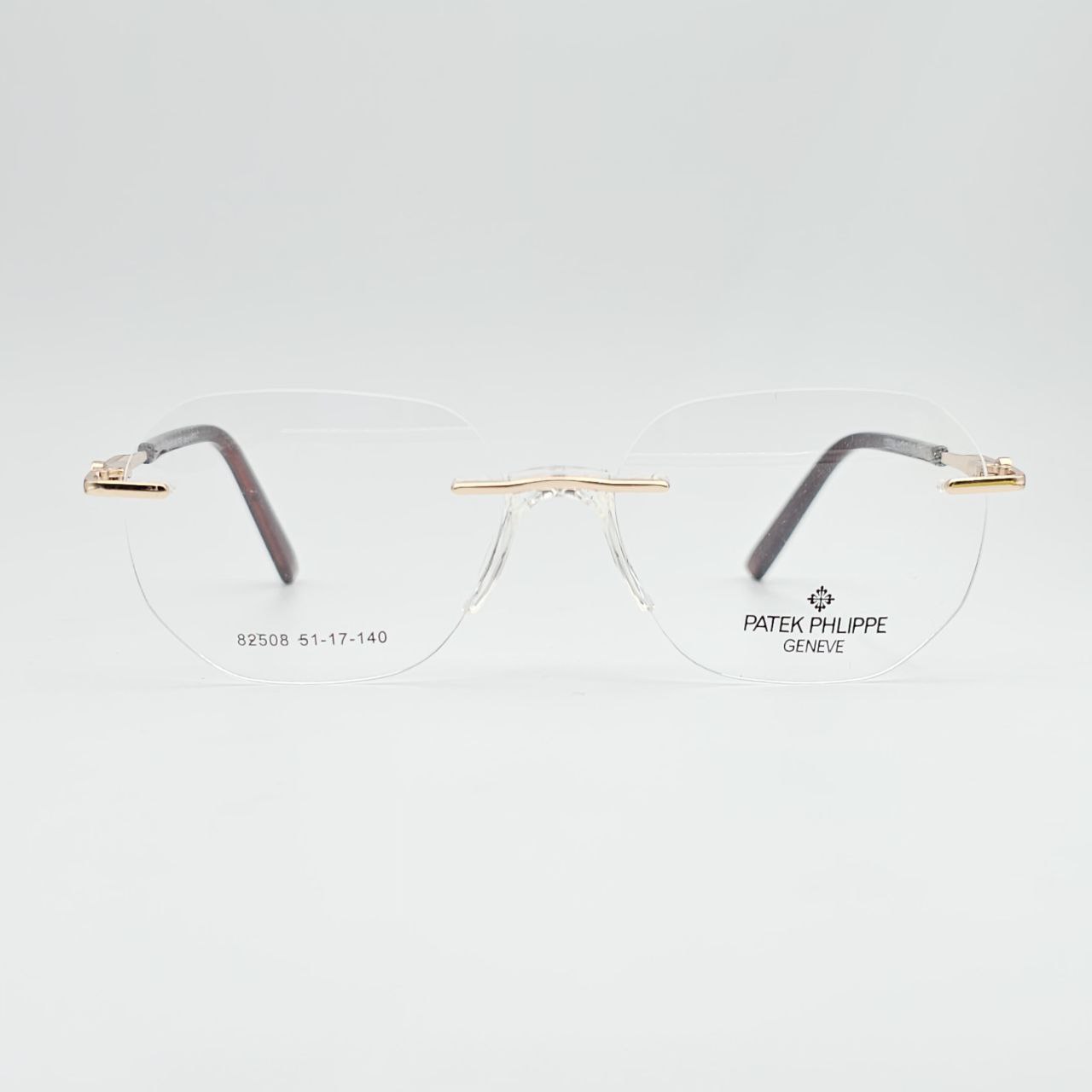عینک طبی Patek Philippe مدل ریملس طلایی با طراحی خاص و ظاهری کاملاً مینیمال، انتخابی ممتاز برای افرادی است که به دنبال وقار، سبکی و ظرافت هستند.