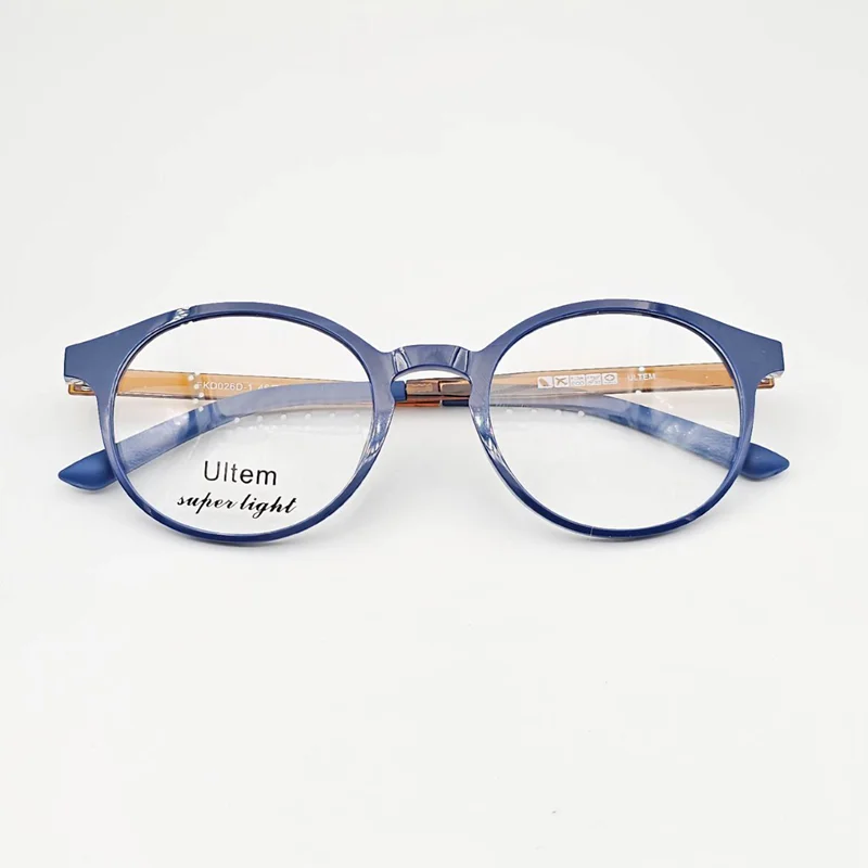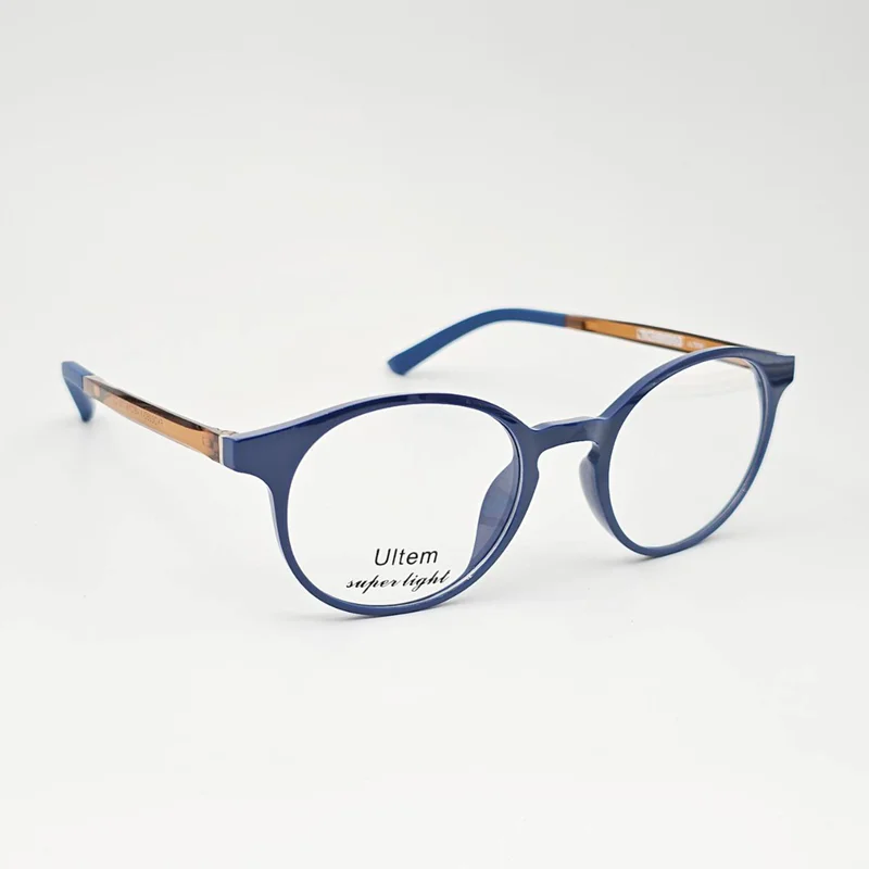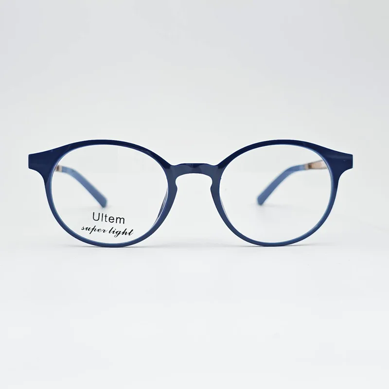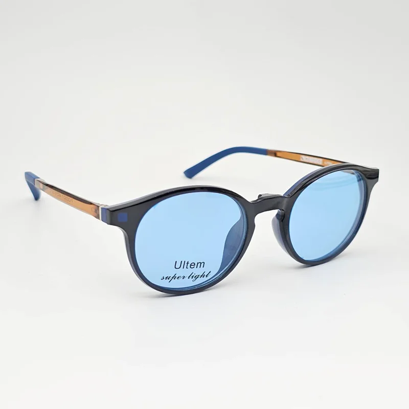 عینک طبی گرد فریم ULTEM فوق سبک آبی با کاور آفتابی