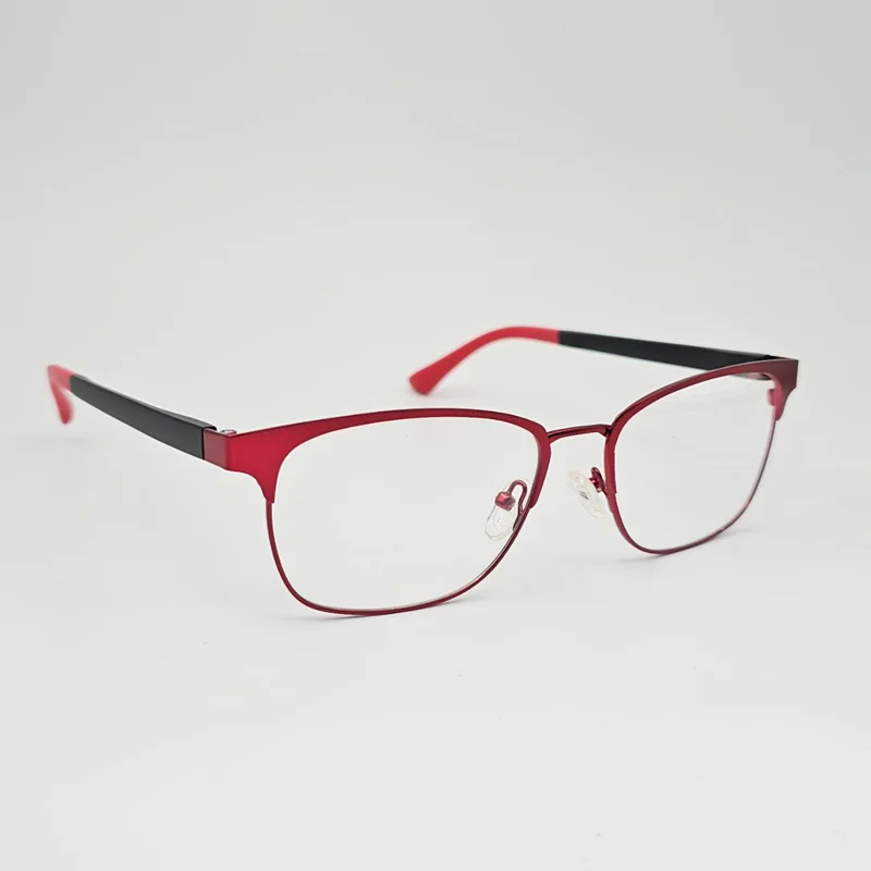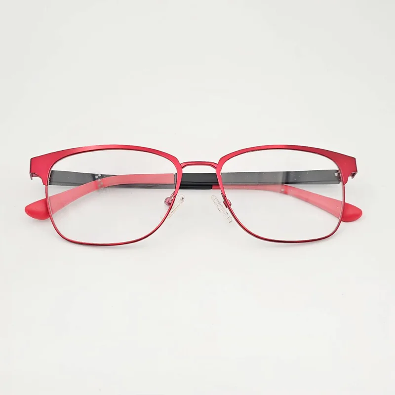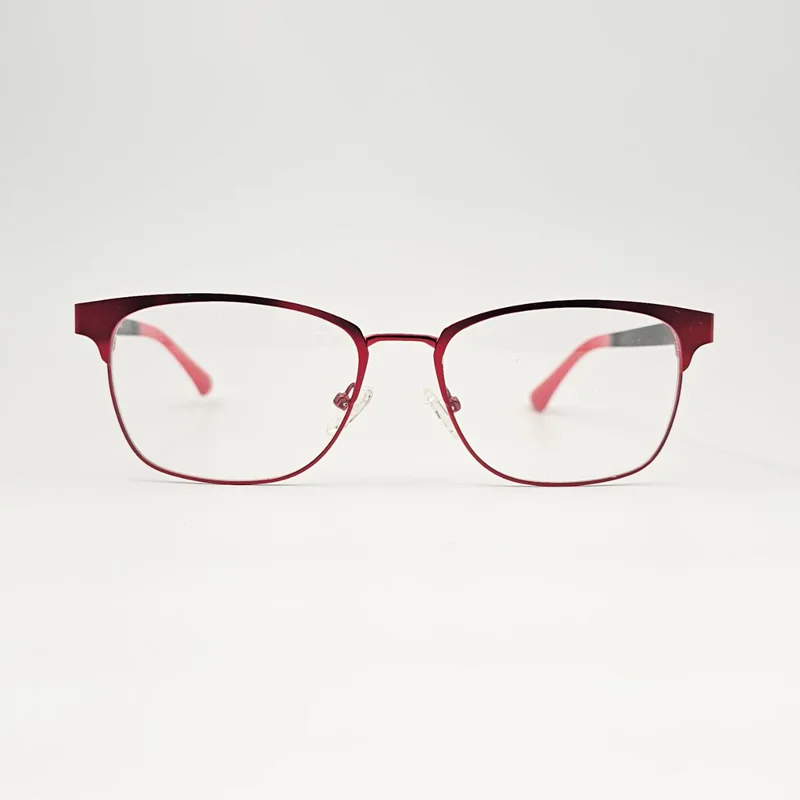 عینک طبی مردانه و زنانه فریم فلزی قرمز با کاور آفتابی