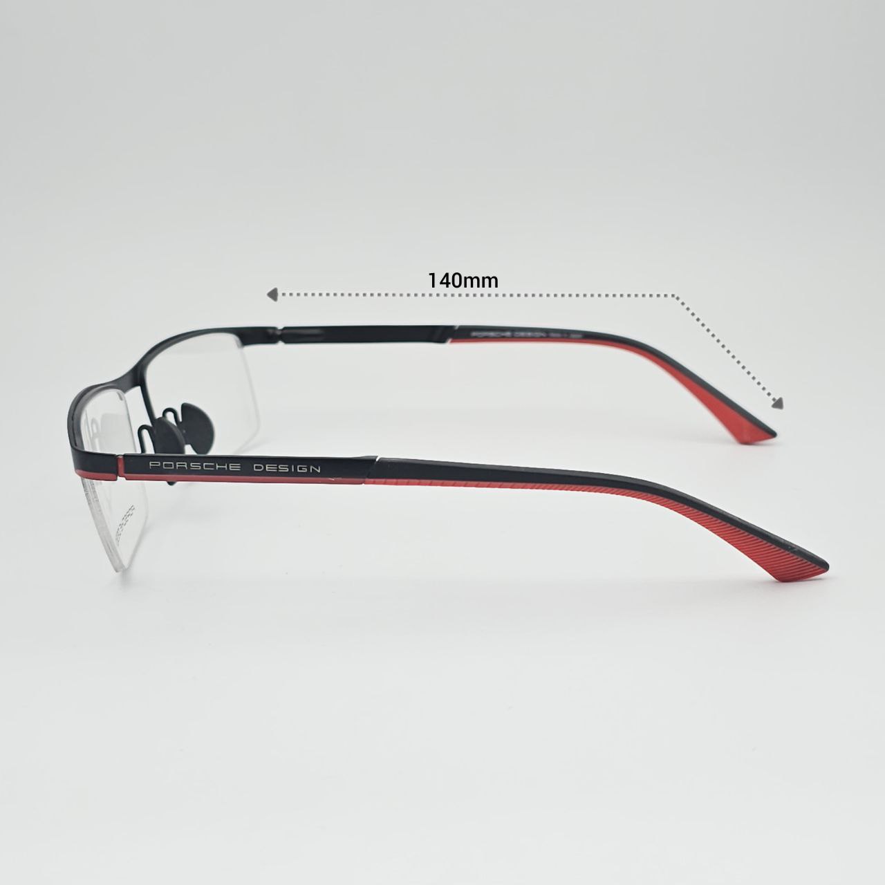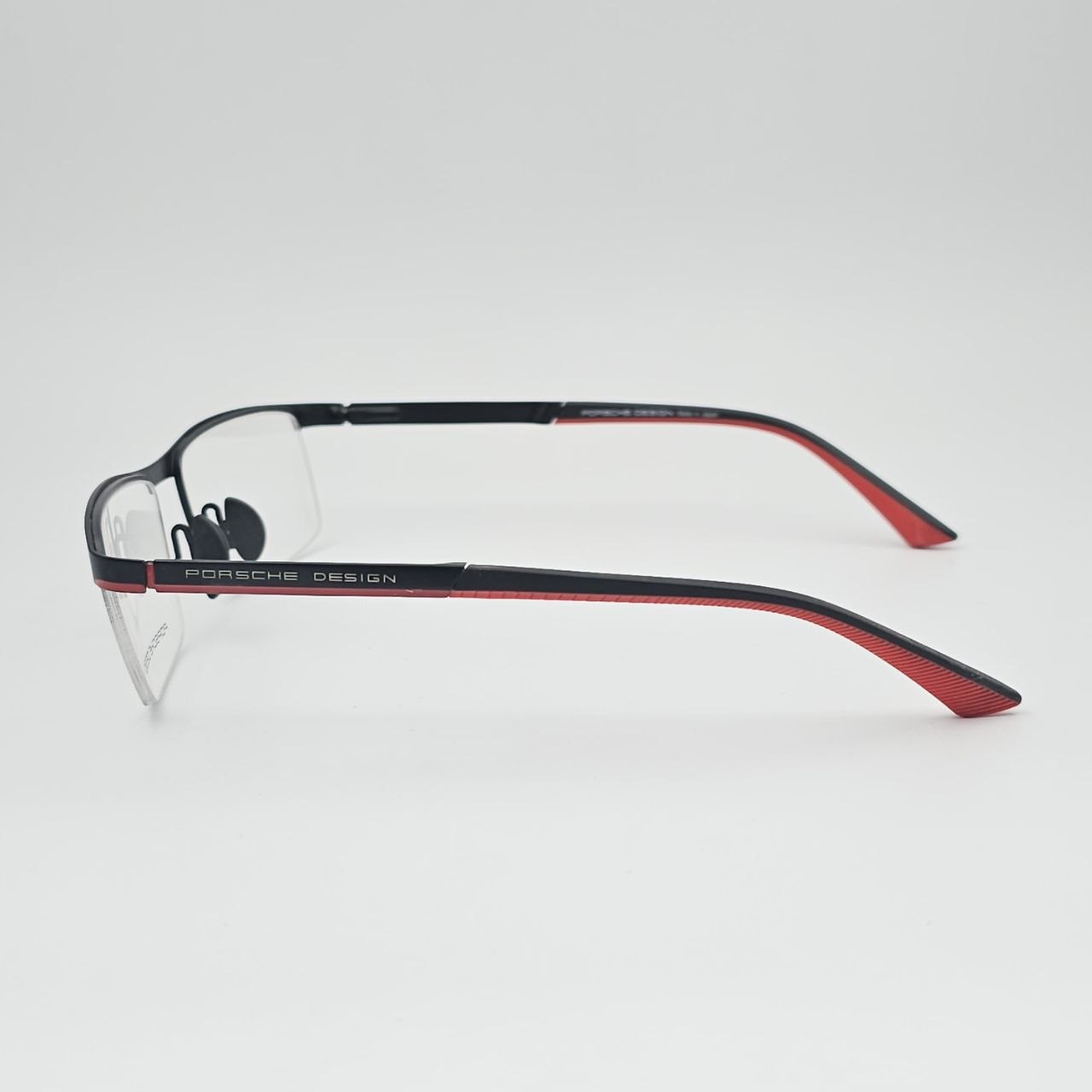 این مدل عینک طبی PORSCHE DESIGN با طراحی نیمفریم مستطیلی و ترکیب رنگ مشکی مات با جزئیات قرمز، انتخابی هوشمندانه برای افرادی است که استایل رسمی را با حس اسپرت و مدرن میپسندند. طراحی آن کاملاً مینیمال اما هدفمند است؛ درست مطابق فلسفه مهندسی برند پورشه.